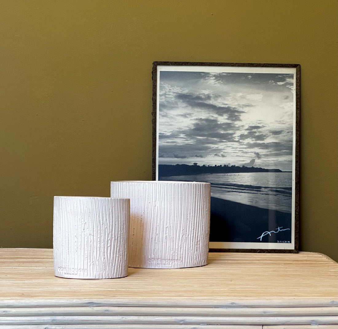 The Nomad White Terracotta candle brings together a handcrafted ceramic vessel and the warm depth...