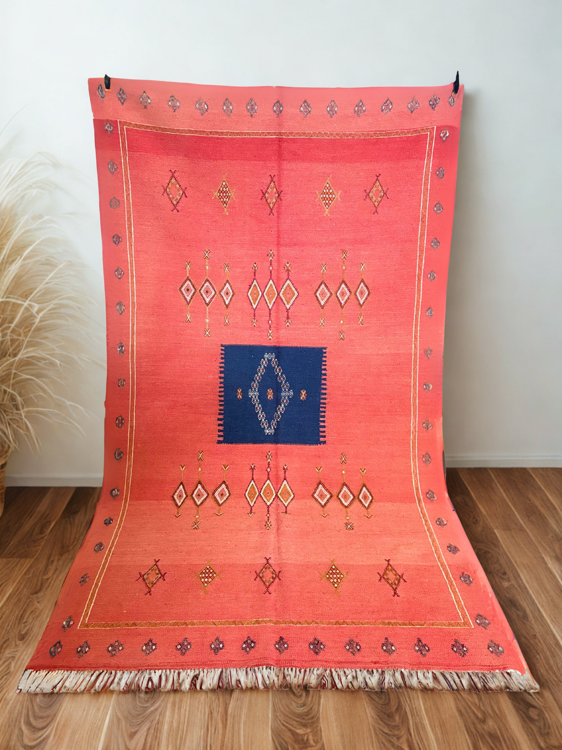 Terra Rosa Akhnif Rug – Moroccan Wool Rug with Amazigh Symbols