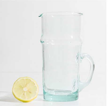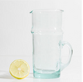 The glass’s signature rounded form ensures an easy, ergonomic grip, while the translucent sea-green hue adds a natural elegance to any table. The matching pitcher features a classic silhouette with a sturdy handle, making it perfect for water, sangria, lemonade, or cocktails. Together, they bring refined simplicity and functional beauty to daily rituals and gatherings alike.