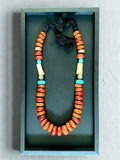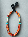 The Element necklace is a powerful fusion of tradition and design, handcrafted from resin beads, carved bone fragments, and metal accents in earthy terracotta, deep jade, and soft ivory tones. Once symbols of protection and vitality in Berber culture, these adornments are reimagined as striking wall art and sculptural décor.