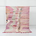 The Rosé Boucherouite Kilim is a vibrant expression of Moroccan creativity and sustainability. Handwoven by artisans using repurposed cotton scraps, each rug is truly one-of-a-kind — carrying the spirit of imagination, resourcefulness, and artistry that defines Boucherouite weaving.