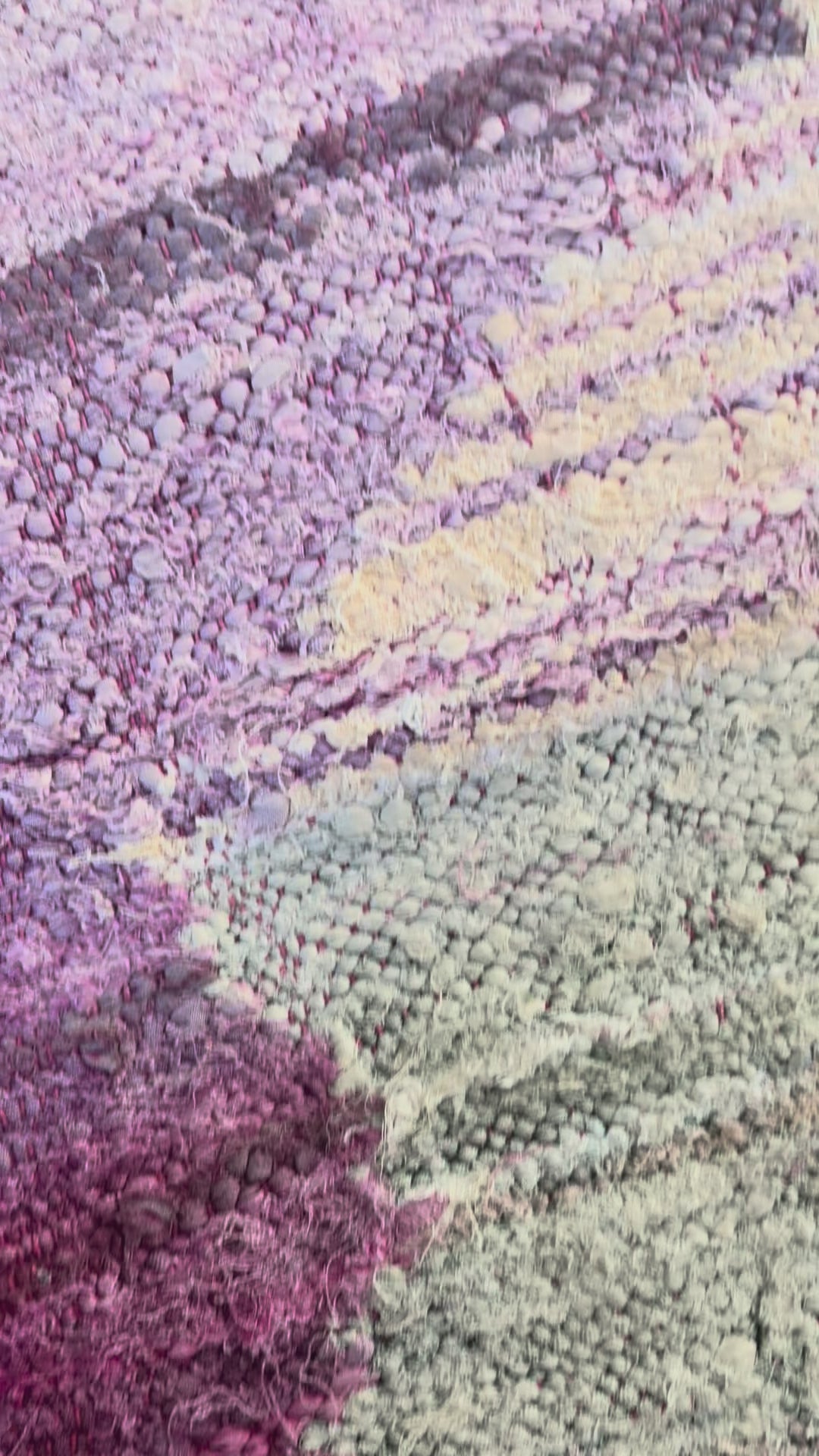 This piece features a playful palette of soft mauve, lavender, and peach, accented with subtle touches of green, blue, and black. The result is a harmonious blend that feels both poetic and eclectic, bringing warmth, joy, and individuality into any space.