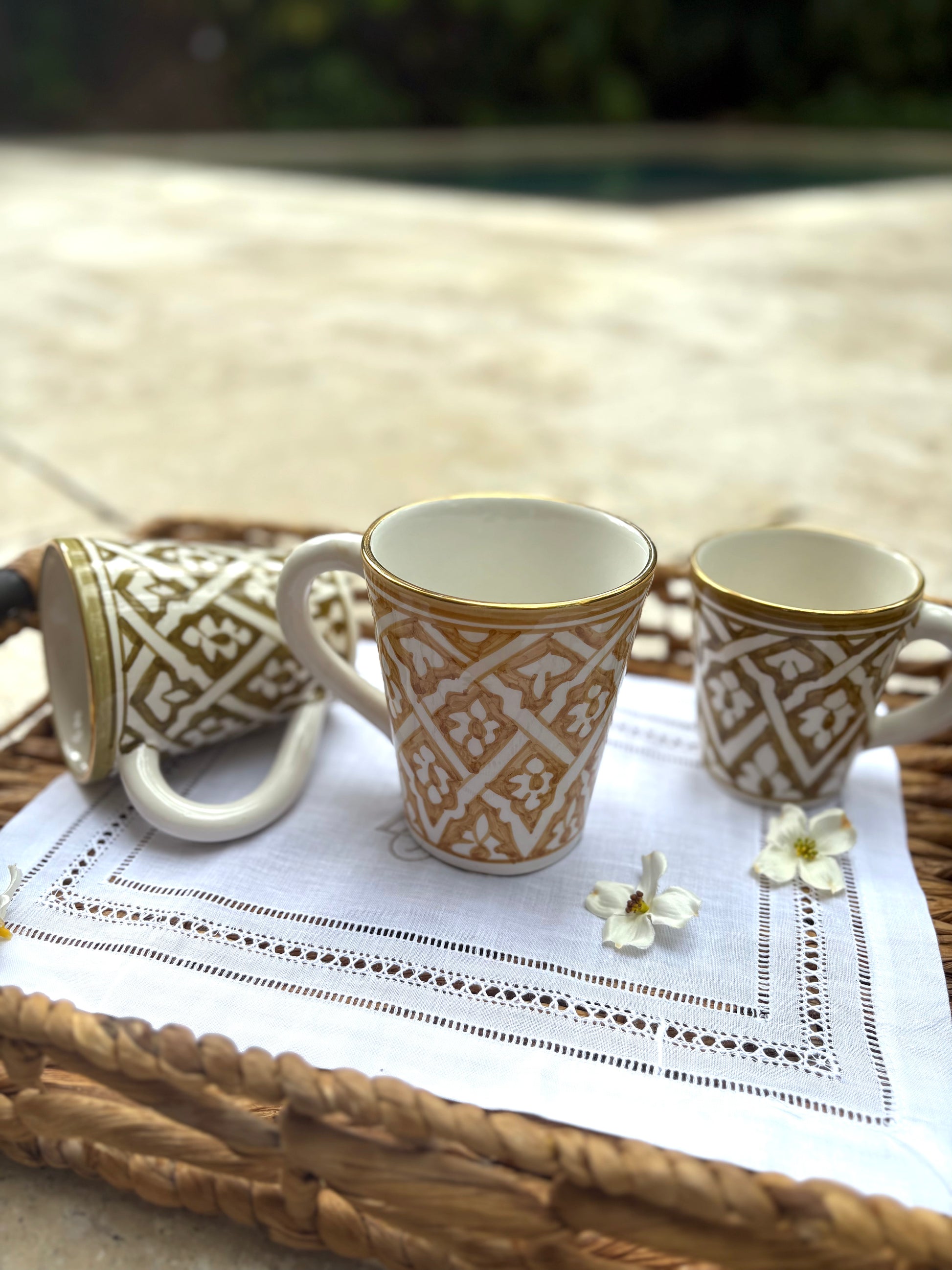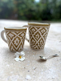 Large Mug – Ceramic Mug in Kaki & Paille, Generous Size with Gold Accents