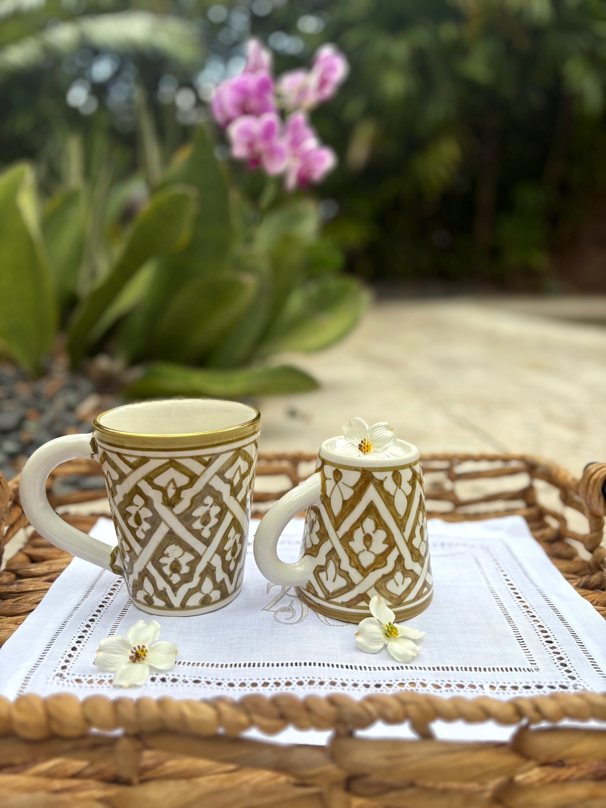 When you want comfort in a cup, reach for this Large Ceramic Mug. Generous in size and artisanal in feel, it’s perfect for lattes, herbal teas, or even a cozy serving of soup. Hand-painted glazes and 12K gold detailing give it an elevated touch, while its bold form makes it a striking everyday essential.