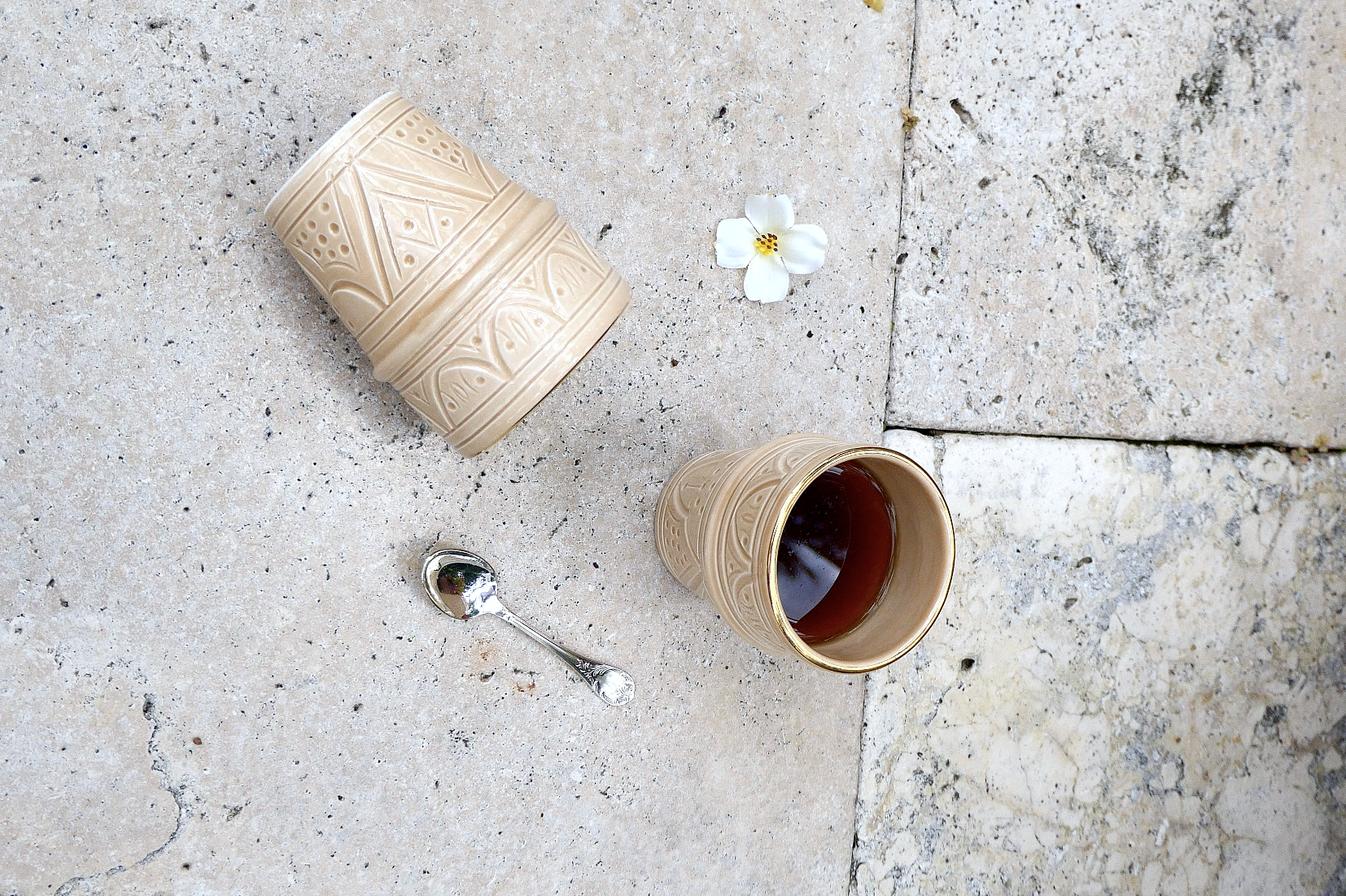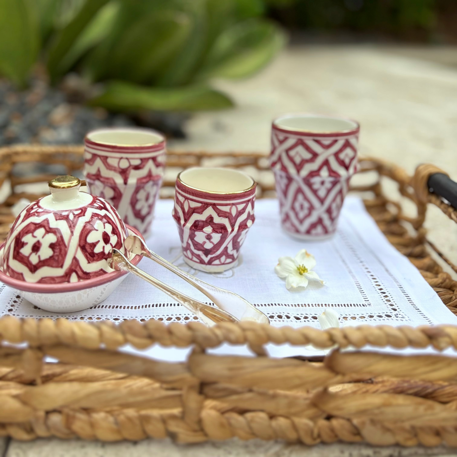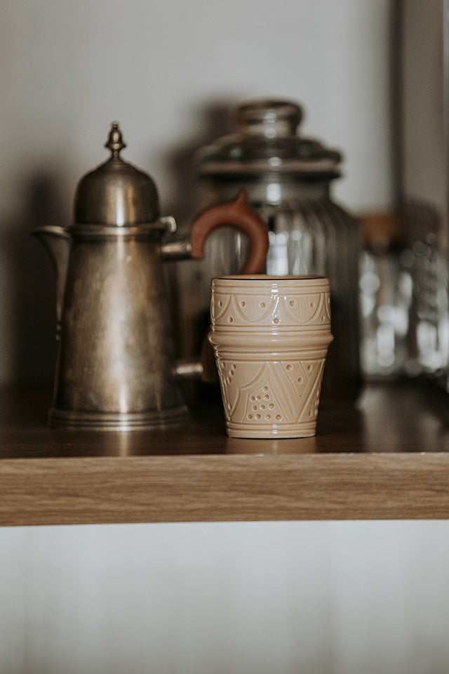 Sized for balance and comfort, our Medium Ceramic Cups are perfect for a strong morning coffee or a calming infusion. Hand-painted by Moroccan artisans and finished with 12K gold, they bring artisanal warmth and everyday elegance to your table. Their size makes them the ideal in-between — more generous than an espresso cup, but lighter than a large serving.