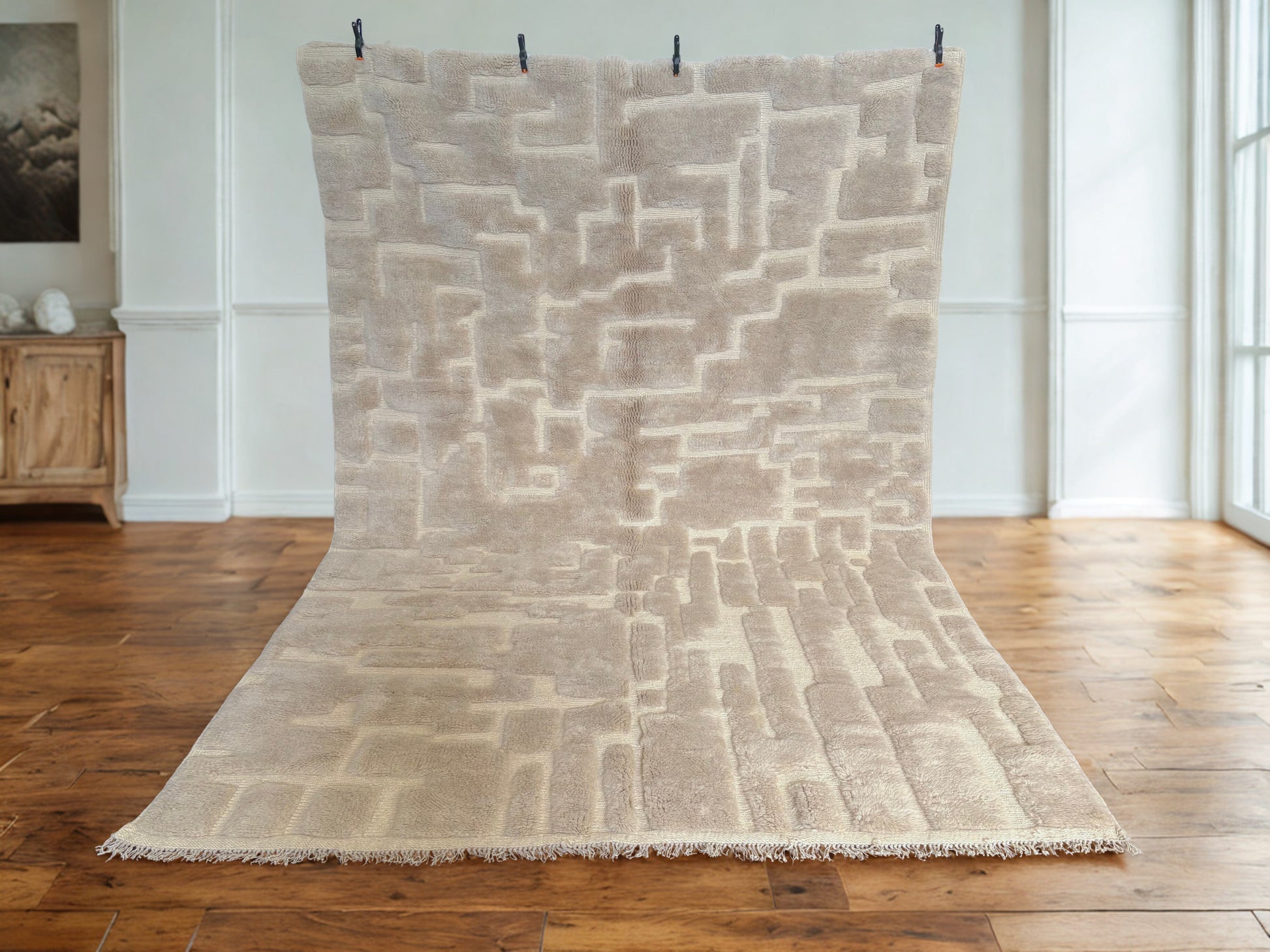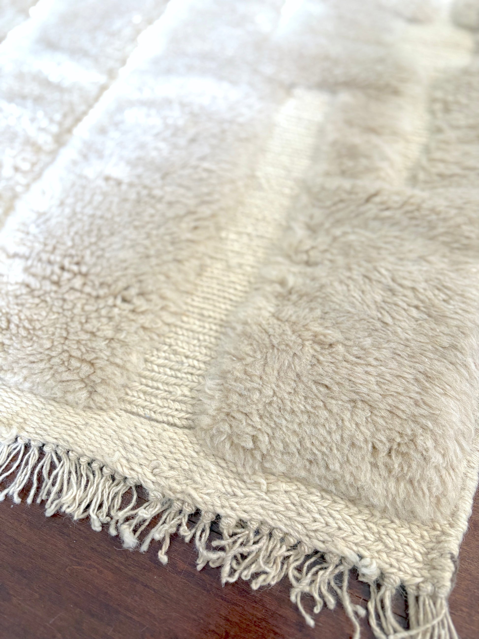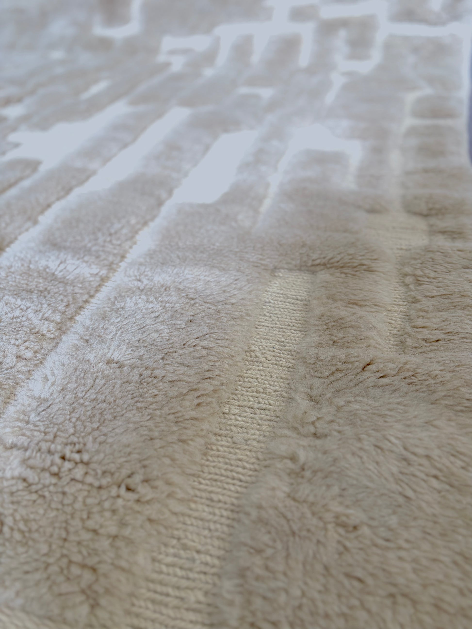 Hand-knotted in Morocco from the finest lamb’s wool, the Mirage Mrirt rug is the embodiment of Berber artistry and timeless luxury. Woven with a dense double-knot construction, it delivers unmatched softness underfoot and durability designed to last for generations. Its subtle white and beige palette makes it a versatile foundation piece—bringing both warmth and refined texture to modern, minimalist, or eclectic interiors.