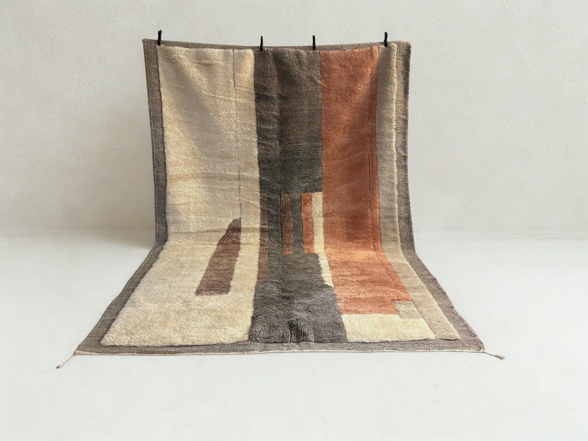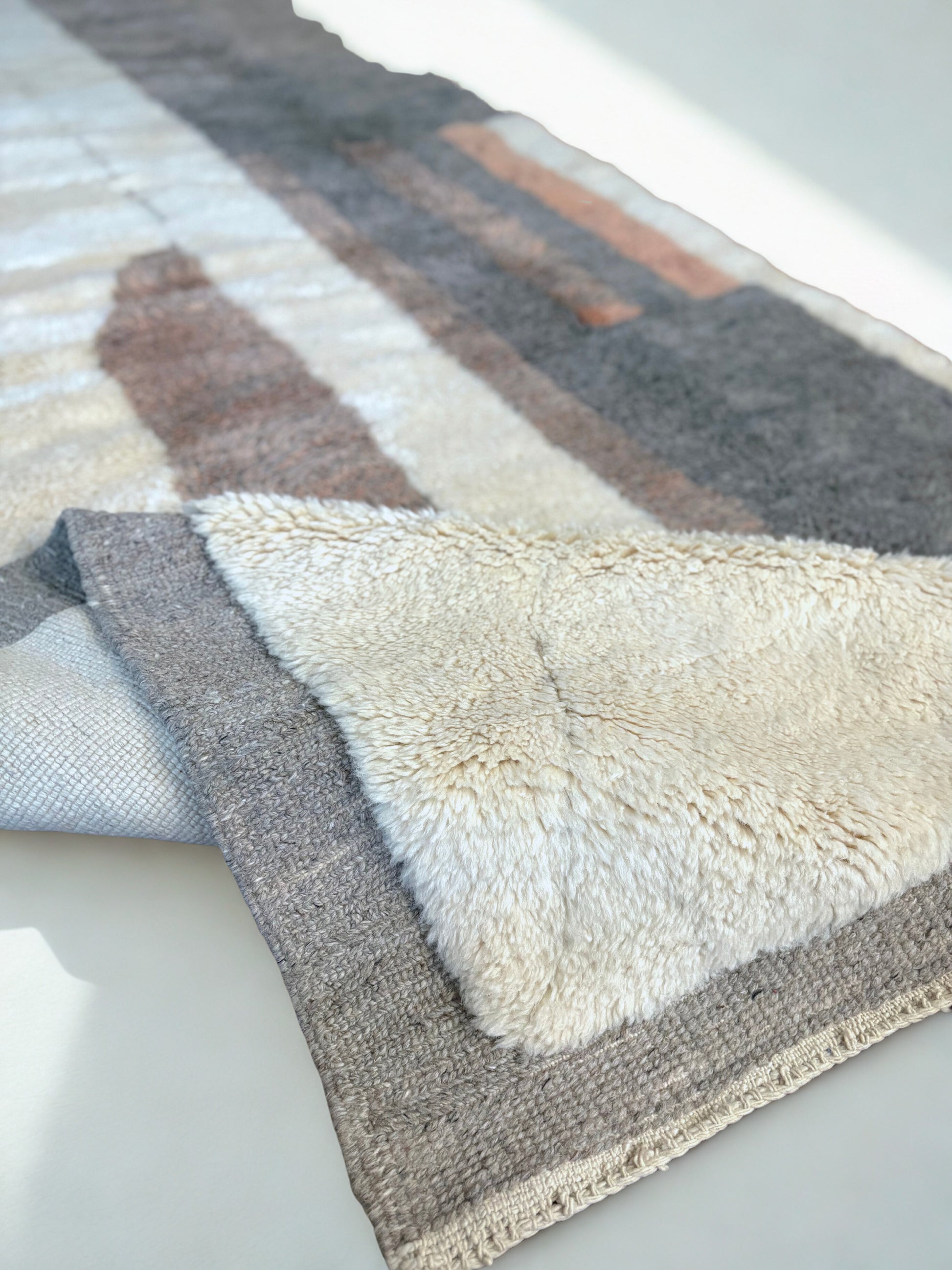The Silver Dusk Mrirt Rug embodies the height of Moroccan weaving artistry. Hand-knotted in the Atlas Mountains from the finest lamb’s wool, it offers unmatched softness, rich texture, and timeless elegance. Known for their double-knot construction, Beni Mrirt rugs are celebrated for their density, durability, and plush underfoot feel — a true investment piece that balances comfort with sophistication.