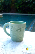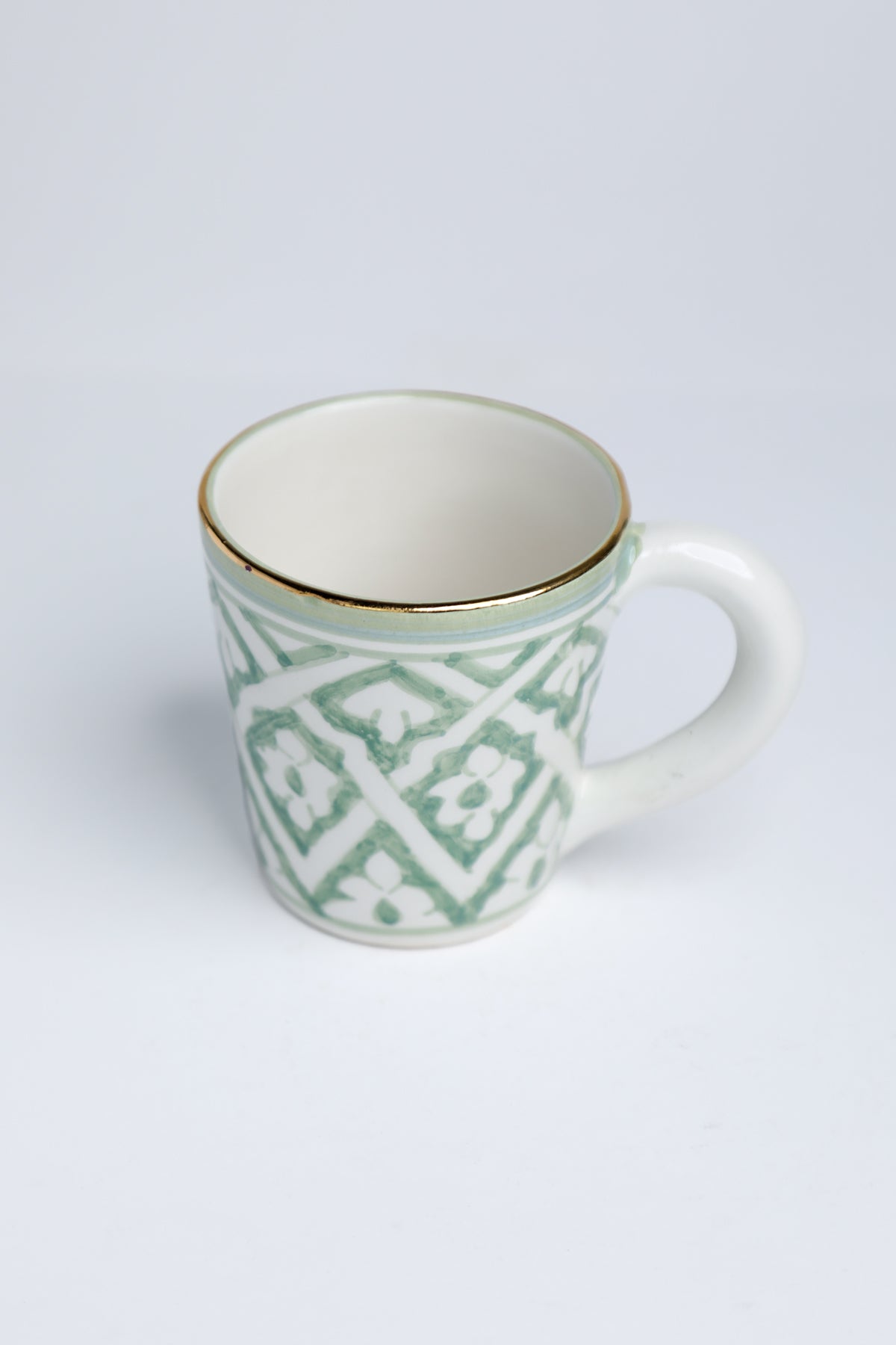 Small Mug – Handmade Ceramic in Mint & Kaki, Gold Detailing