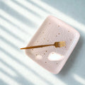 Perfect for coffee service, appetizers, or styling with a sugar bowl and spoon, this tray brings a touch of artisanal refinement to any setting. Its clean silhouette and subtle gold detailing make it both functional and decorative.