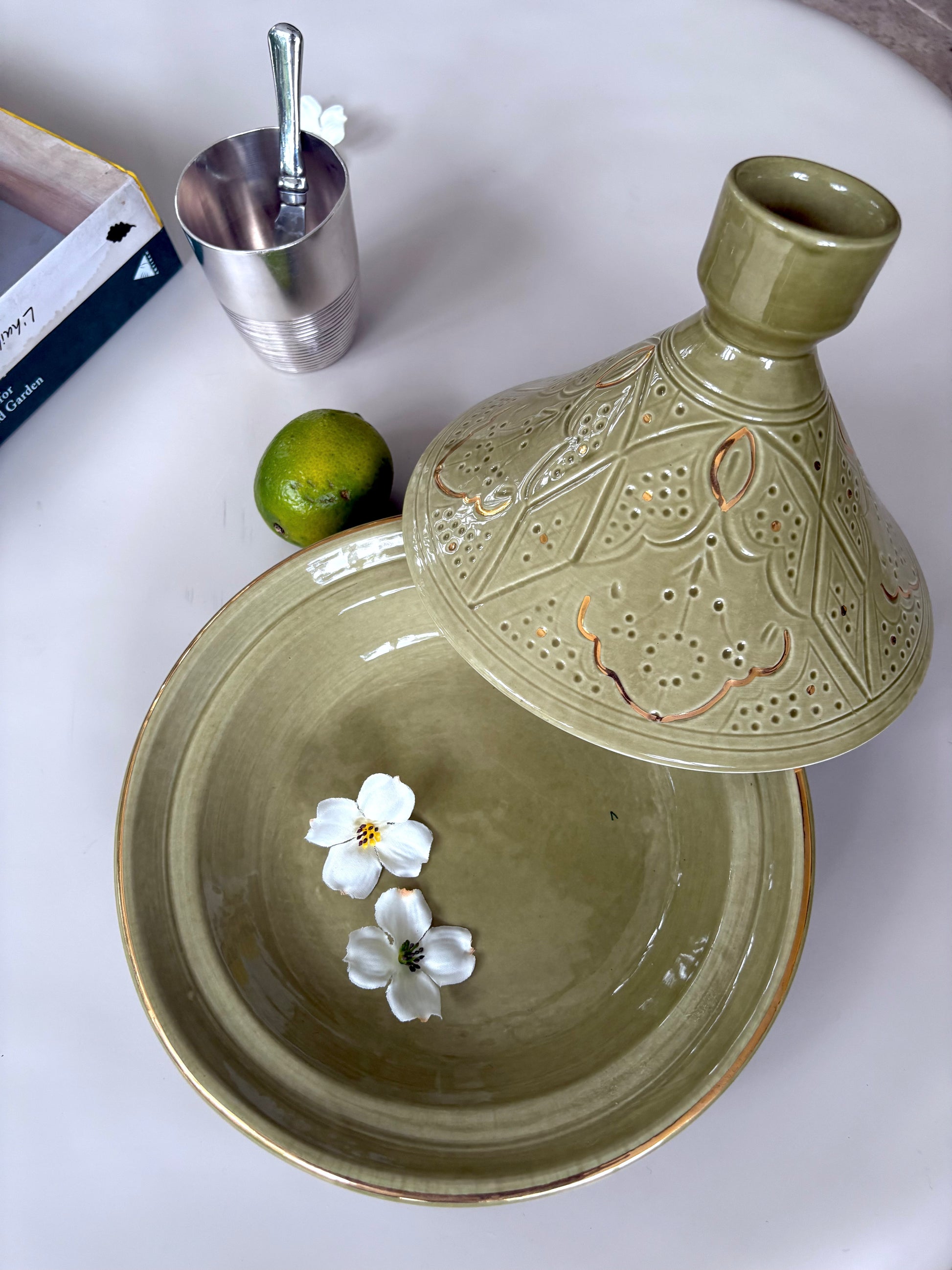 Medium Ceramic Tajine – Hand-painted with Gold Accents