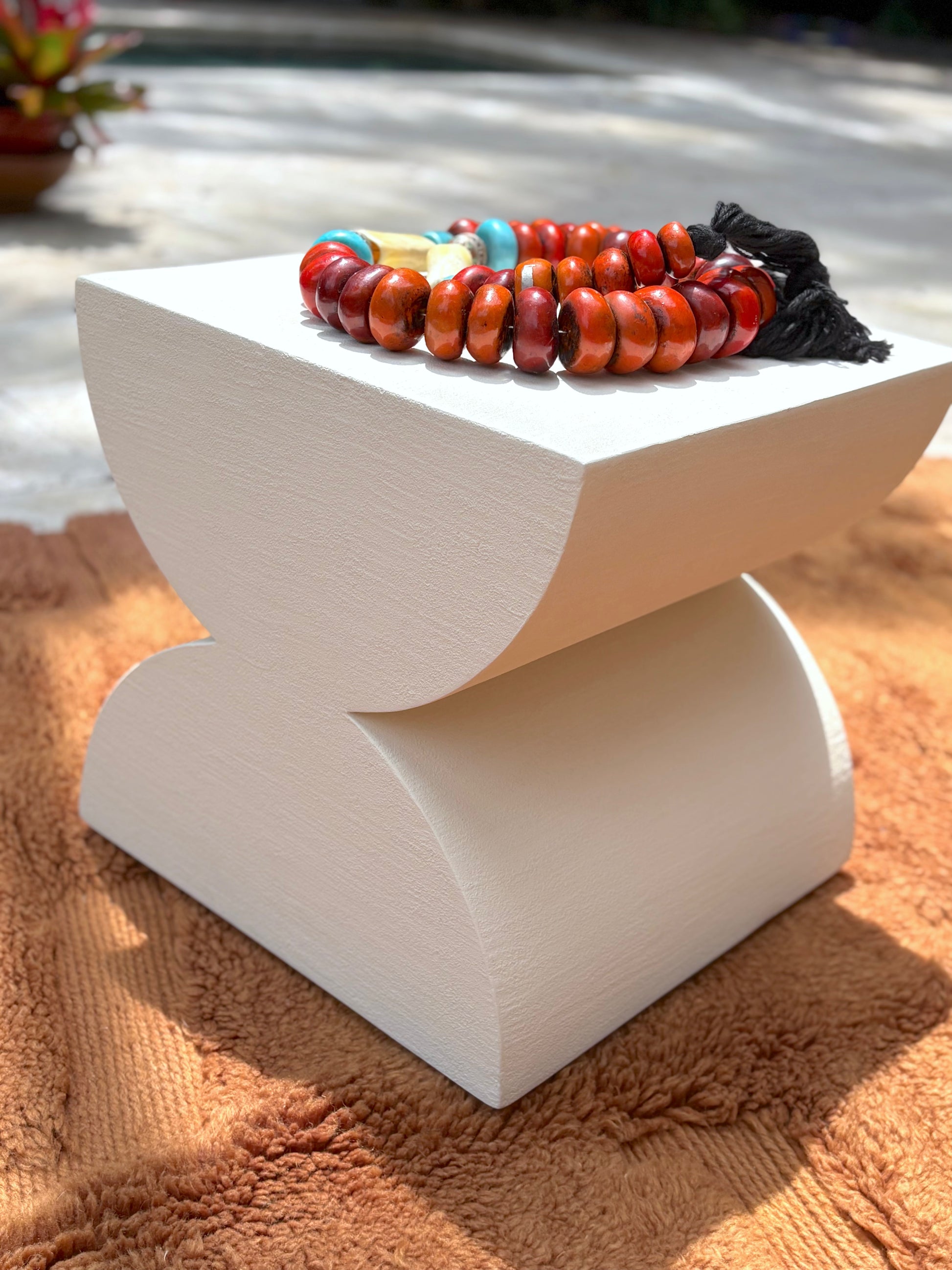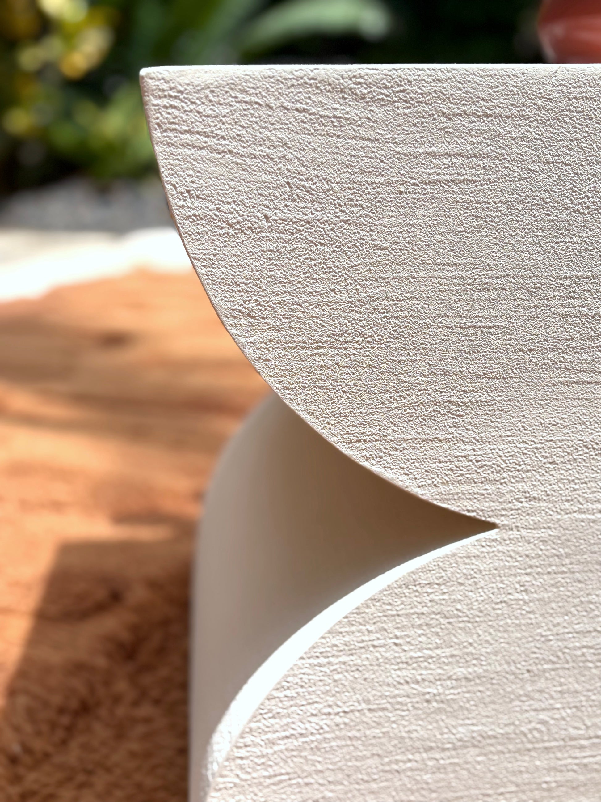 More than furniture, this sculptural column becomes a stage for beauty. Crafted from solid wood with a textured off-white matte finish, its softly grooved surface and monolithic form bring both presence and subtlety. Designed as a modern pedestal, it offers a quiet foundation for displaying art, plants, or everyday objects with intention.